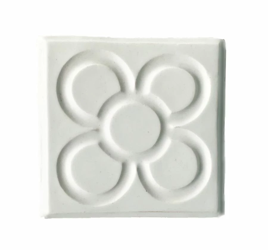 Technique used: White clay pressed and enameled and cooked at 1038 degrees.