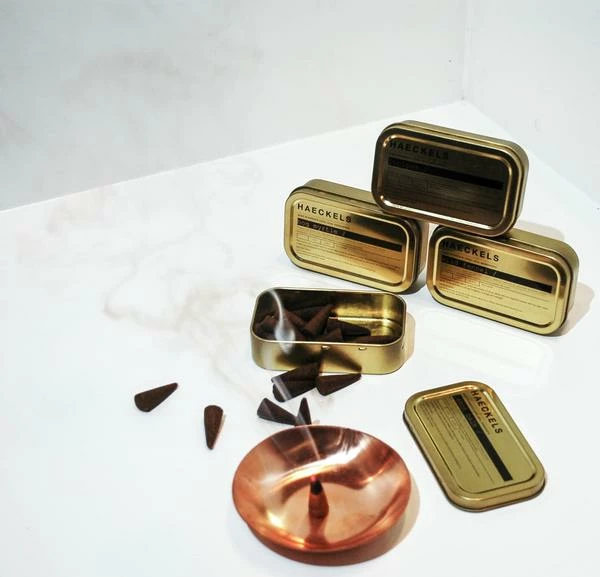 Haeckels Incense Lemon Balm. Locally harvested natural scented incense. Lemon Balm grows to 70–150 cm tall with oil rich leaves that a gentle lemon fragrance that will come off onto your hands when crushed. Melissa Officinalis is in the mint family of Lamiaceae which reflects this high oil content and naturally fragrant quality. The white summer flowers attract bees, hence the genus name Melissa (Greek for ‘honey bee’) whilst high doses of purified lemon balm extracts have been found to be effective in the relief of stress, producing increased calmness. How to Use: Light the end of the cone and burn for around 15 seconds blowing the ember until red hot, place in the heart of your home in either a hallway or a landing to allow the fragrant smoke to disperse. Use the lid or a heat proof surface to burn each cone on. Burning time: 15 min approx. Scent longevity: 2-4 hours (in a medium size room).