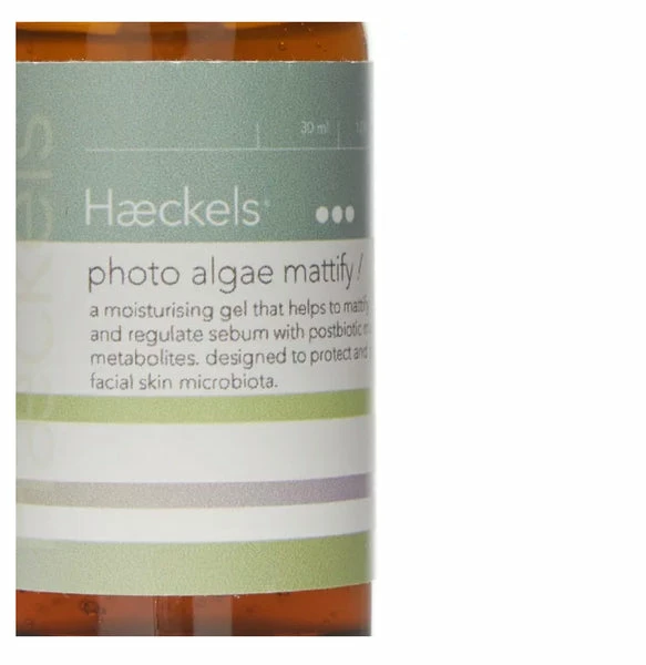 HAECKELS PHOTO ALGAE MATTIFY FACIAL SERUM 30ML £26 An ocean inspired moisturising facial serum designed to instantly mattify the skin and reduce sebum in the long term. This lightweight, silky gel will leave your skin visibly hydrated with a matte skin finish. 30ml Vegan & Cruelty Free Description An ocean inspired moisturising facial serum designed to instantly mattify the skin and reduce sebum in the long term. This lightweight, silky gel will leave you ‘photo ready’ with a matte skin finish. Benefits: Designed to protect and restore facial skin microbiota, Photo Algae Mattify is a moisturising facial serum that instantly mattifies, and regulates sebum with postbiotic marine metabolites. By helping to reduce the release of pro-inflammatory mediator TNFa, which is directly involved in activation of lipogenesis in sebocytes, Photo Algae Mattify controls the production of sebum. A single application of Photo Algae Mattify is sufficient to absorb excess sebum on the surface of the skin. Preventing the build-up of sebum in the pores stops them from dilating. Use: Apply a few drops of Photo Algae Mattify to face in the morning after the application of creams. We have designed this to work after Algae Plump + B3 and our Eco Marine Cream. It works perfectly as a primer before makeup after all creams have been applied or as the finishing serum to your daily routine. About This Product Purpose Photo Algae Mattify is designed to protect and restore skin microbiota by utilising a potent combination of postbiotic ingredients. An ocean inspired moisturising facial serum designed to instantly mattify the skin and reduce sebum in the long term. This lightweight, silky gel will leave you ‘photo ready’ with a matte skin finish. Method Apply a few drops of Photo Algae Mattify to face in the morning after the application of creams. Why it Works By helping to reduce the release of pro-inflammatory mediator TNFa, which is directly involved in activation of lipogenesis in sebocytes, Photo Algae Mattify controls the production of sebum. A single application of Photo Algae Mattify is sufficient to absorb excess sebum on the surface of the skin. Preventing the build-up of sebum in the pores stops them from dilating. Ingredients Lactobacillus/Laminaria digitata (Kelp) ferment filtrate, Aqua, Xanthan gum, Benzyl alcohol, Saccharide isomerate, Phenethyl alcohol, Salicylic acid, Glycerin, Sorbic acid