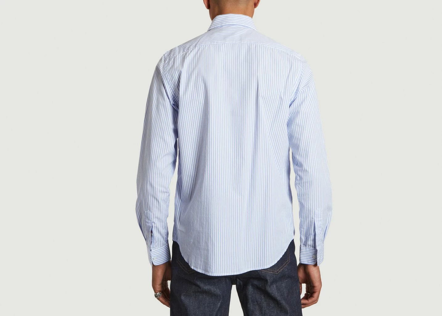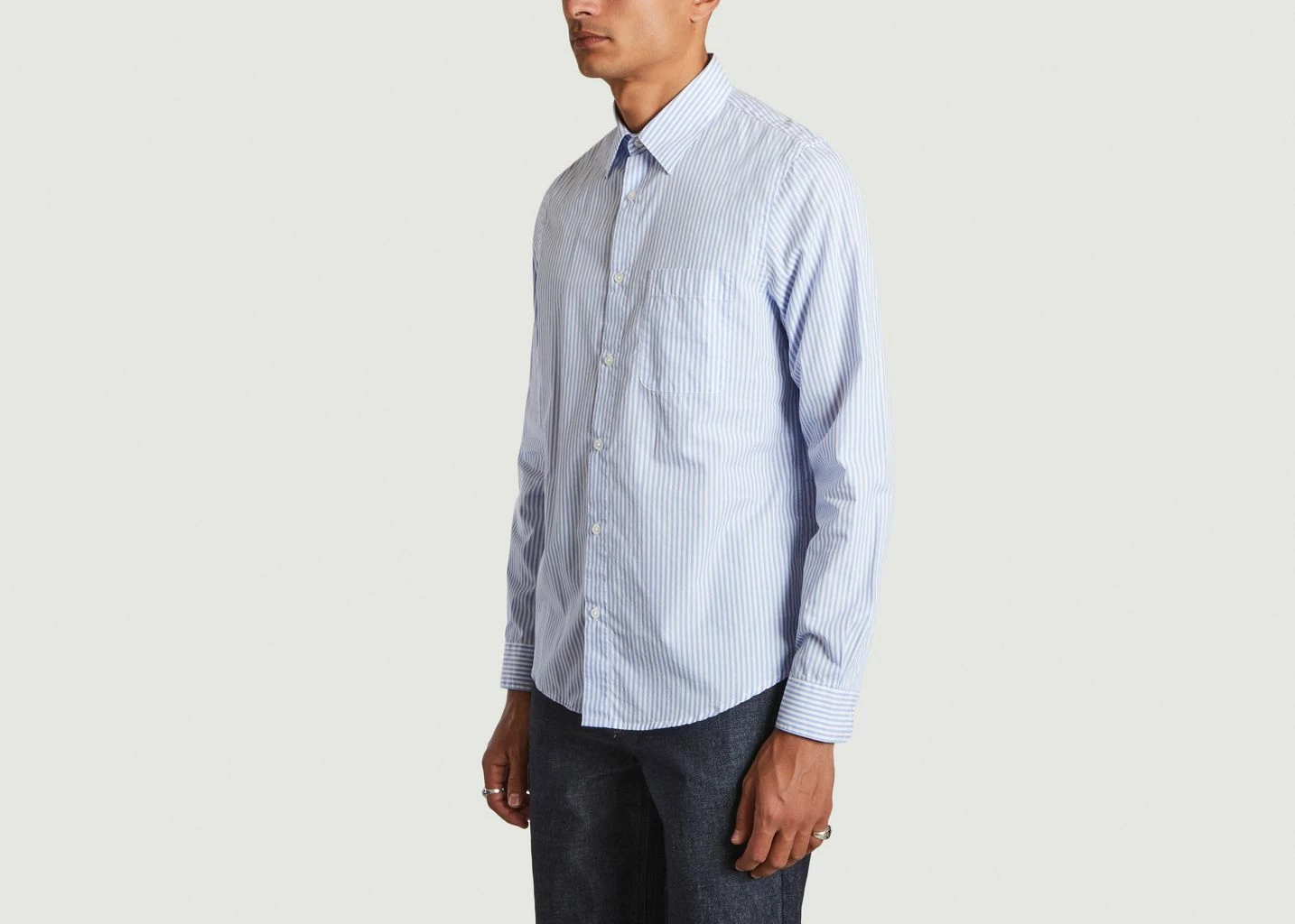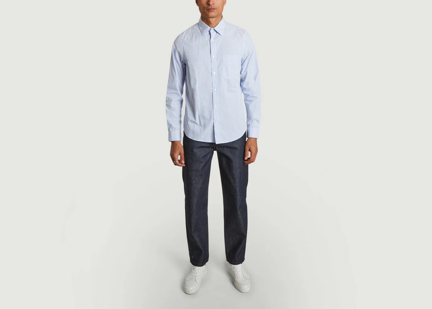 Striped cotton button-up shirt, regular and classic fit, collar neckline, button closure, white buttons, rounded hem, long sleeves. Fall for the Cosimo shirt by Harmony! Comfort and style characterize it at best. With pretty sneakers and fitted pants or chinos, it will be perfect for a minimalist and classy look.