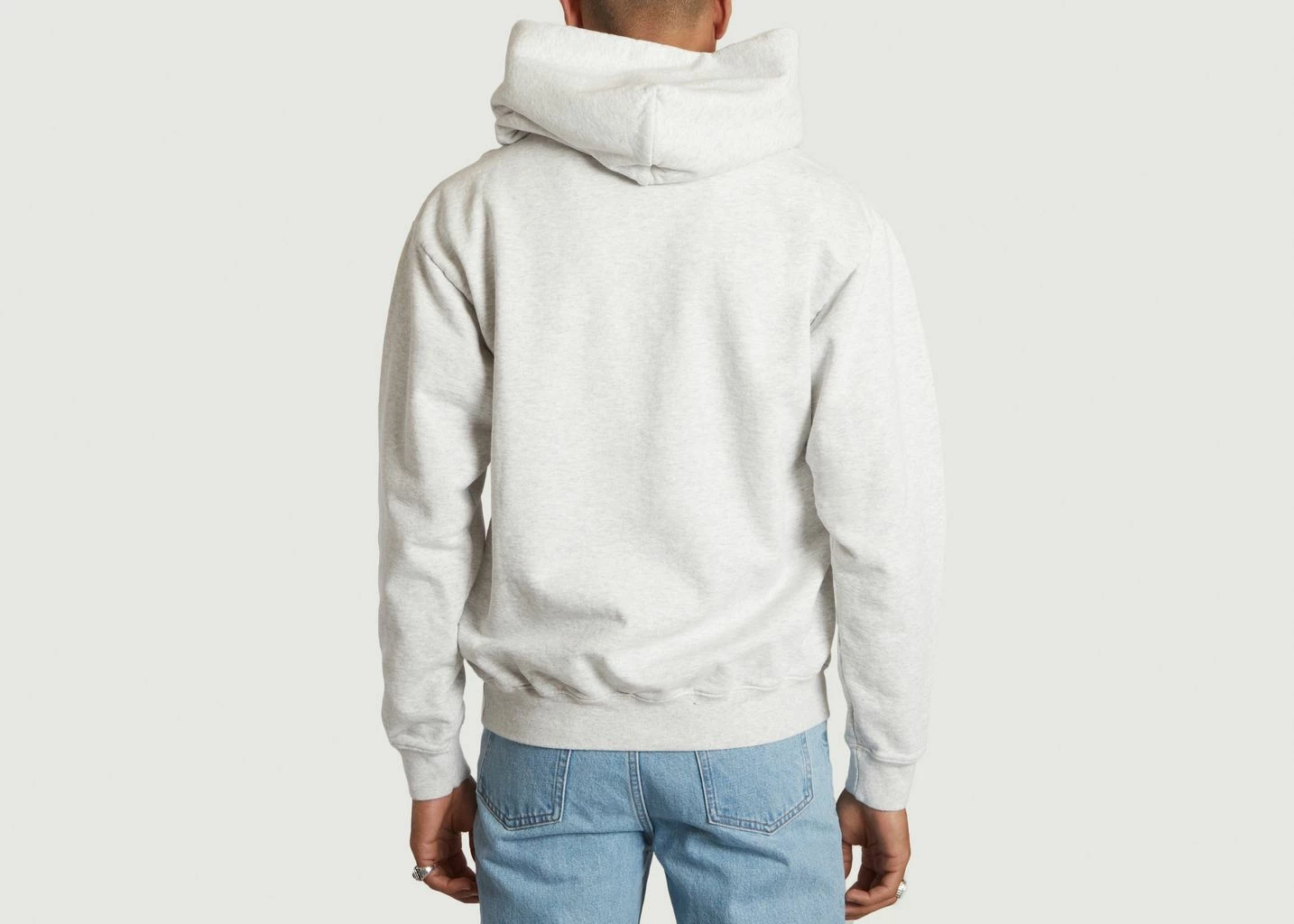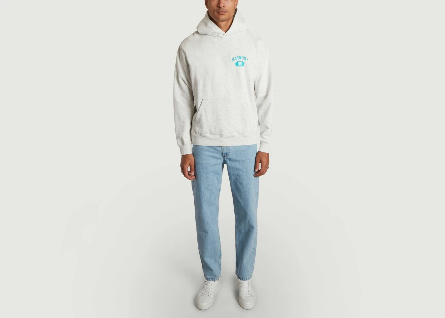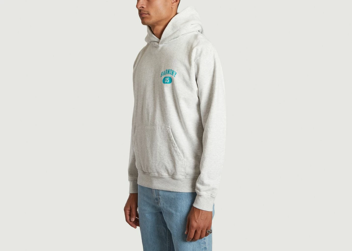 Grey mottled hoodie, dyed in the mass, made mainly of cotton (11.5 oz). Long sleeves, loose fit. It features an Ivy League inspired chest print, kangaroo pocket, ribbed trim. Part of Harmony’s USA Program collection that pays homage to the sportswear style of the 90s. Wear this hoodie for a vintage American style you won’t get tired of! With jeans or jogging pants and sneakers, the possibilities are endless to perfect a sportswear look.