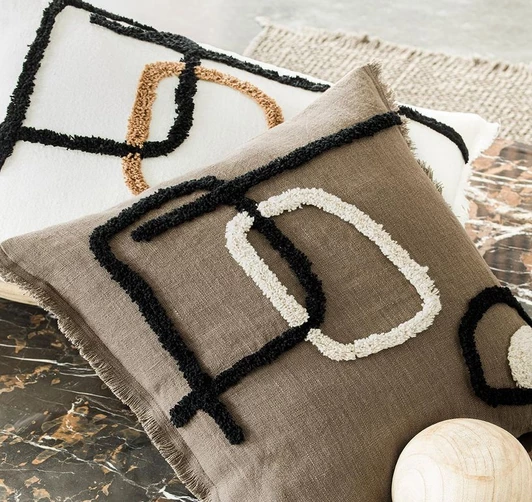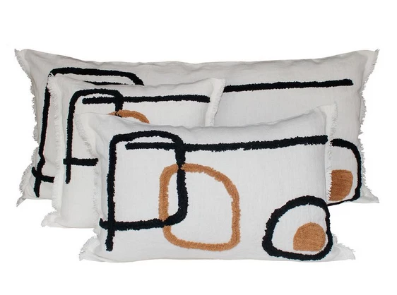 An ethnic chic spirit will invite you into your home with this linen cushion cover from the Tikri collection by Harmony. We love its bohemian look, with its fringed finish and its graphic motif in relief. One imagines it as well on a bench or an armchair in rattan, as in a Greek interior all in white.