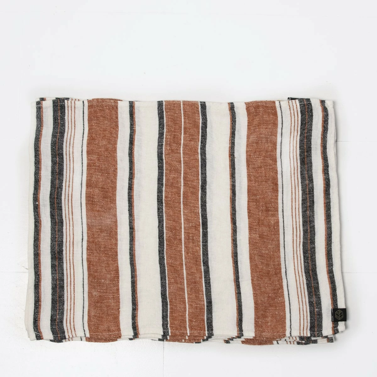 Set de 6 manteles individuales de lino estampado rayas, en tonos cobre, modelo Ajaccio de la marca Harmony. Medidas: 36x46cm Material: 100% Lino