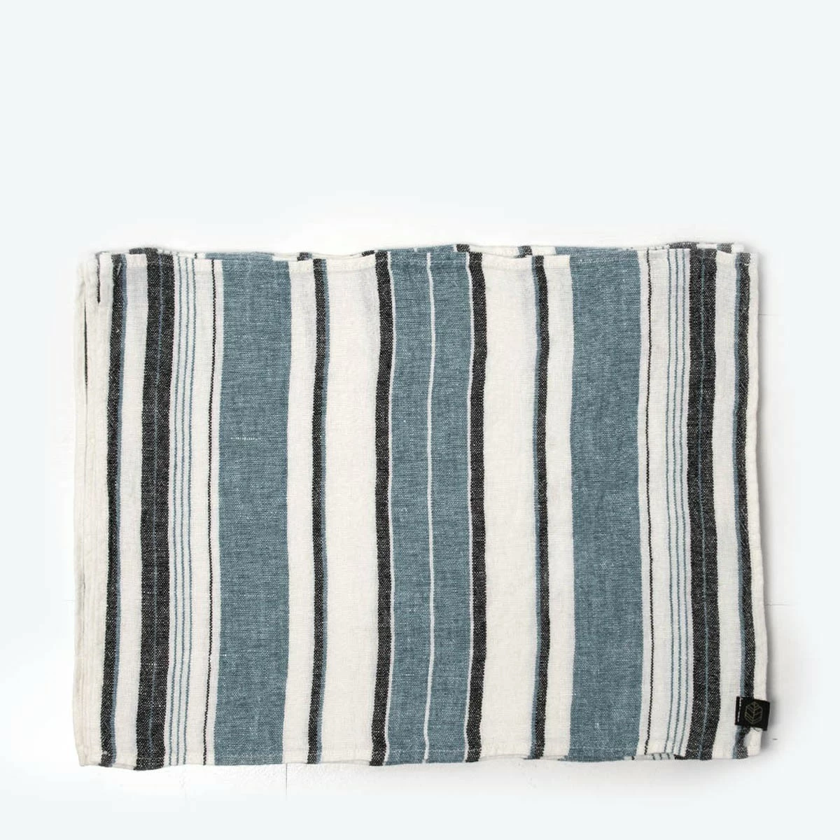 Set de 6 manteles individuales de lino estampado rayas, en tonos aqua, modelo Ajaccio de la marca Harmony. Medidas: 36 x 46cm Material: 100% Lino