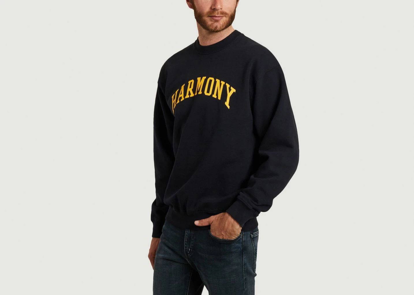 Sweatshirt made in organic cotton, navy blue color, long sleeves, round neck, Harmony inscription on the front. Don’t hesitate to wear this nice University sweatshirt by Harmony ! Wear it easily with jeans and sneakers to complete a casual sportswear look.